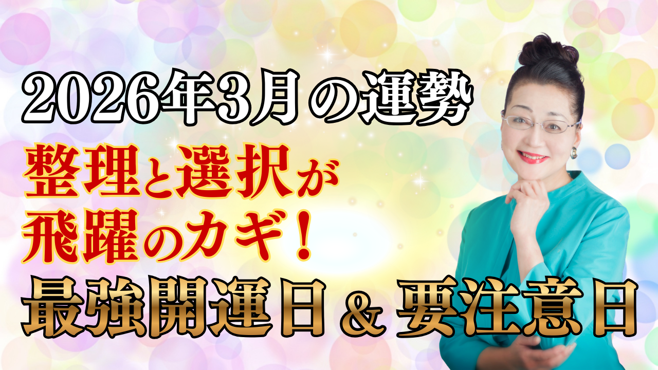 最新のYouTube動画では、3月の全体運から、逃したくない最強開運日、そして慎重に過ごしたい要注意日まで詳しくお届けしています。