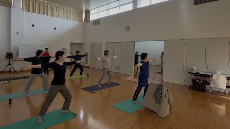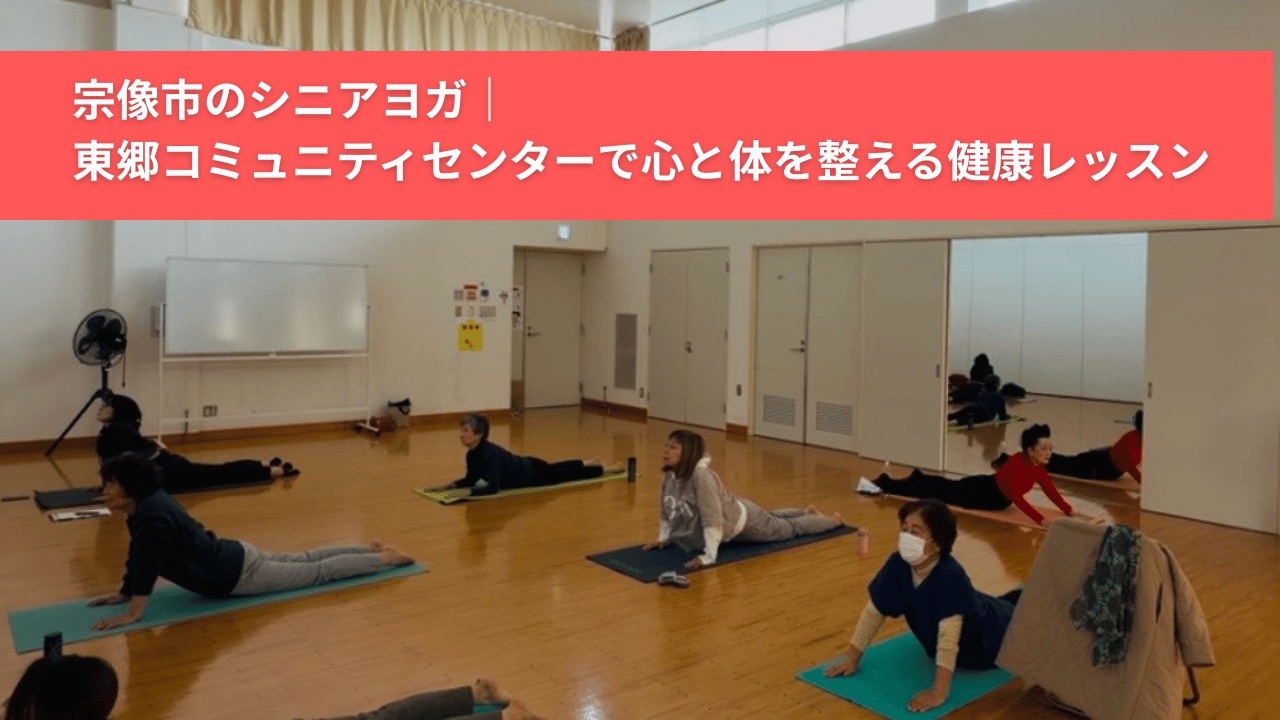 今日は、地域のコミュニティセンター(宗像市:東郷コミュニティセンター)で活気いっぱいに行われている「シニアヨガ教室」の様子をお届けします。