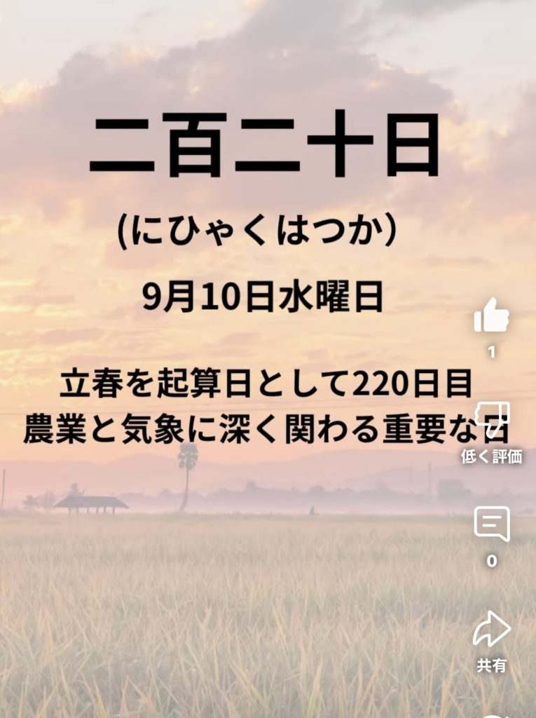 雑節の1つ、立春から数えて220日目の日