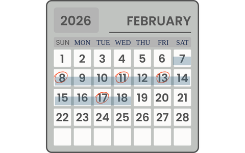 2月11日(水) ◎ 一日中 ※建国記念の日